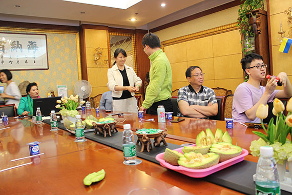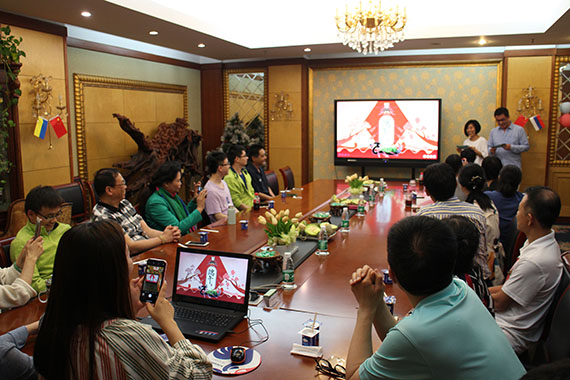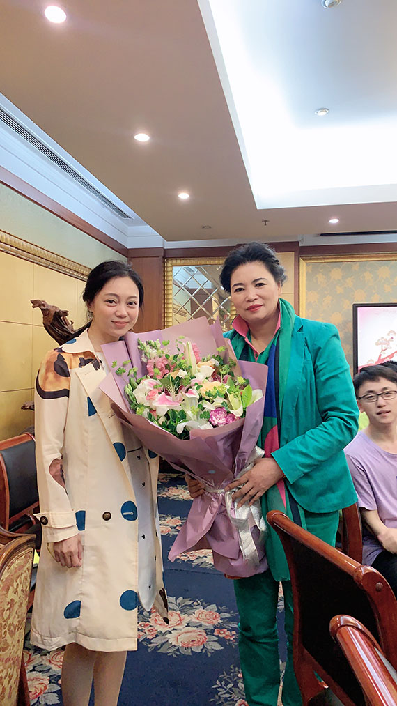 活動當(dāng)天,趙總收到公司員工代表獻(xiàn)花。