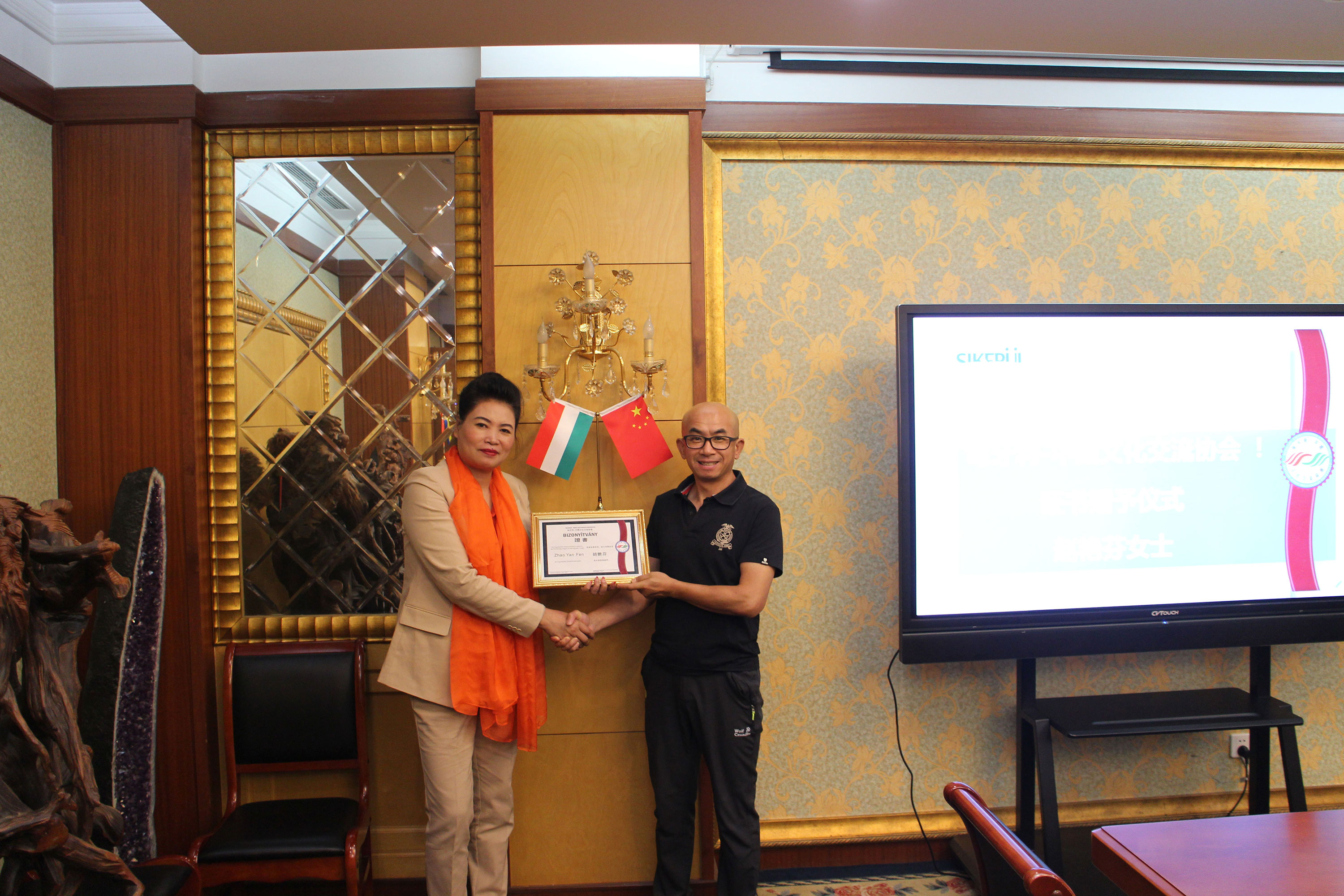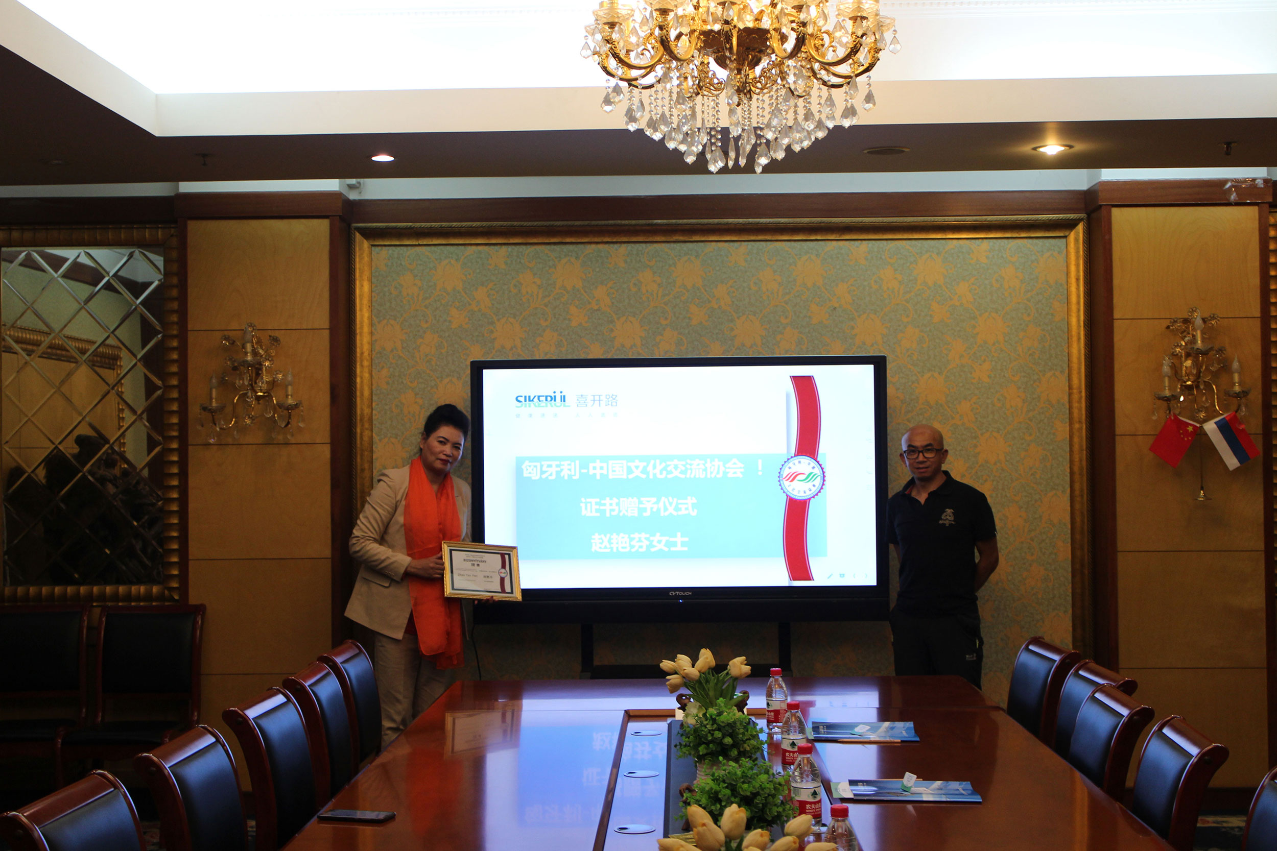 匈牙利-中國文化交流協(xié)會 授予喜開路公司董事長趙艷芬女士榮譽顧問證書。